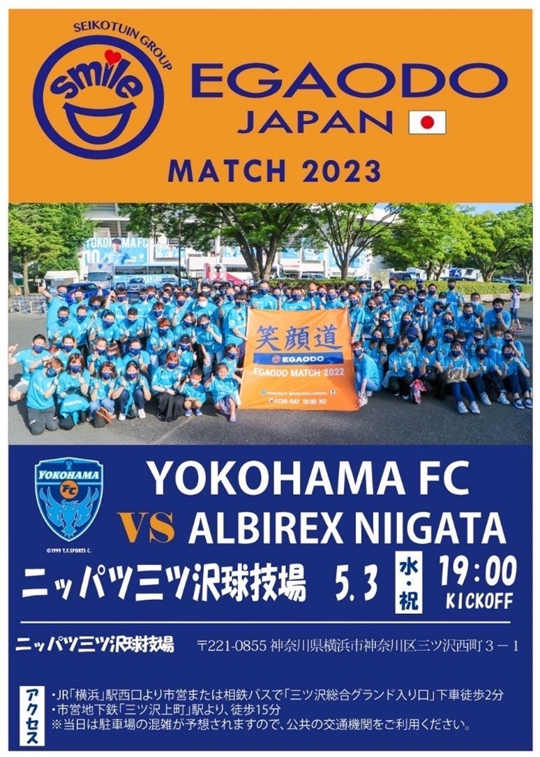 J.LEAGUE 横浜FC 笑顔道整⾻院グループ「EGAODO MATCH 2023」開催