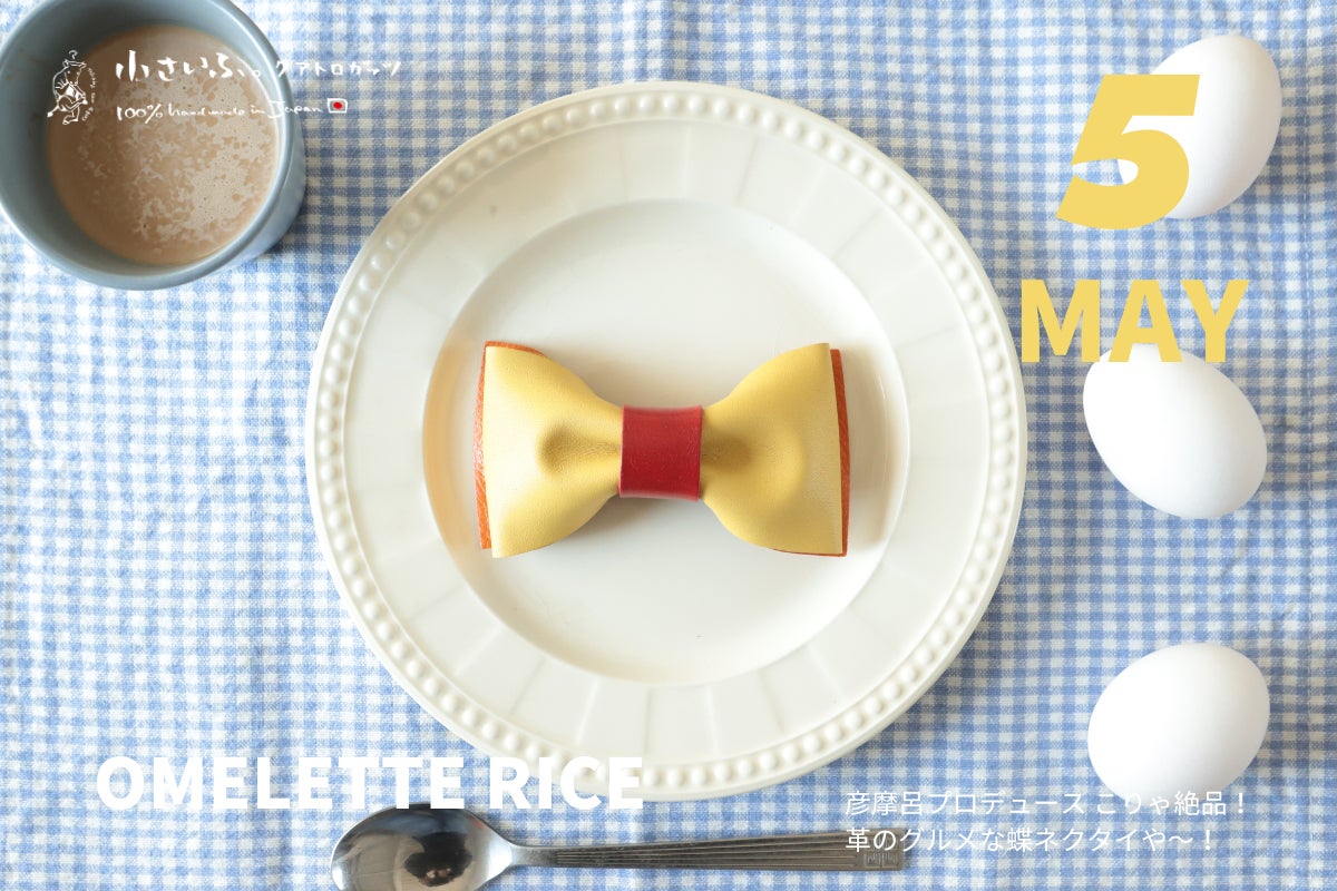 グルメリポーター彦摩呂×革職人がコラボ!「革のグルメな蝶ネクタイ」5月はオムライスをデザイン。5/22たまご料理の日に発売開始。