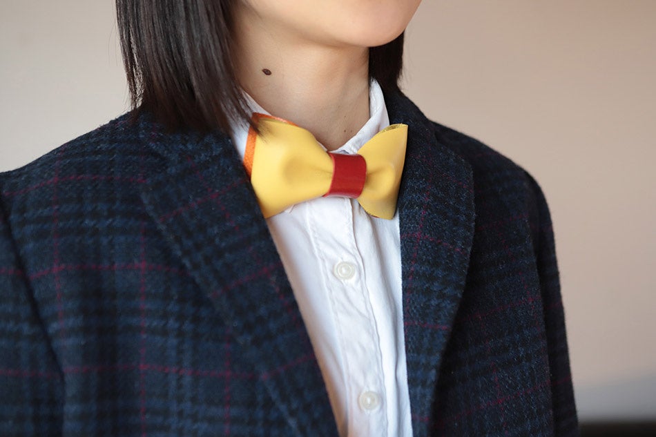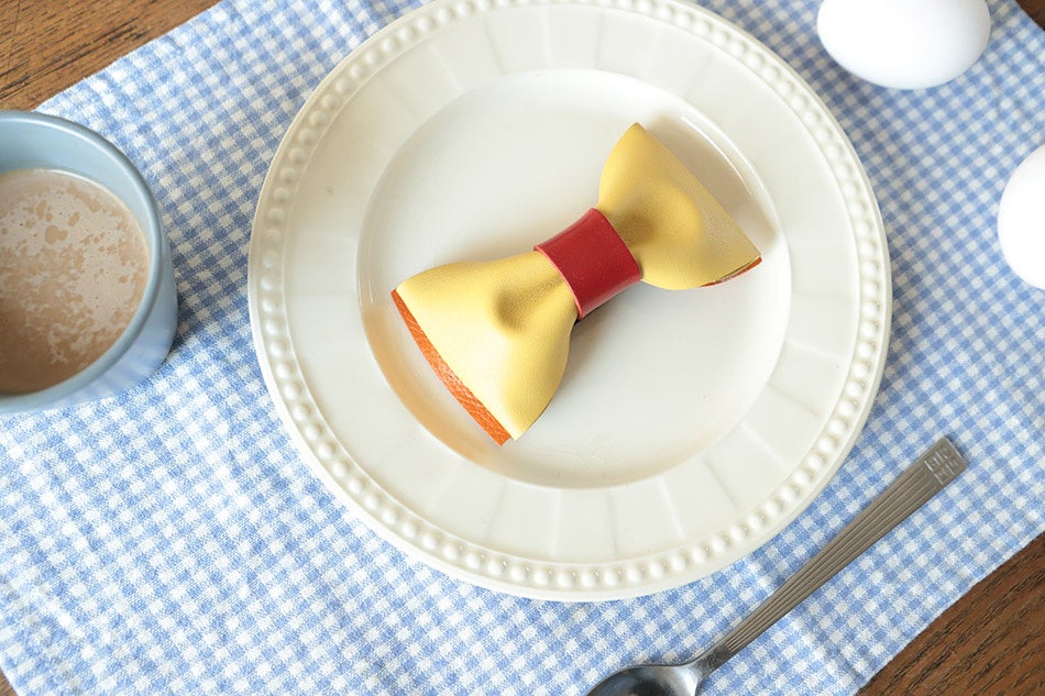 革職人が本革で全てハンドメイド「グルメな革の蝶ネクタイ 第11弾はオムライス」