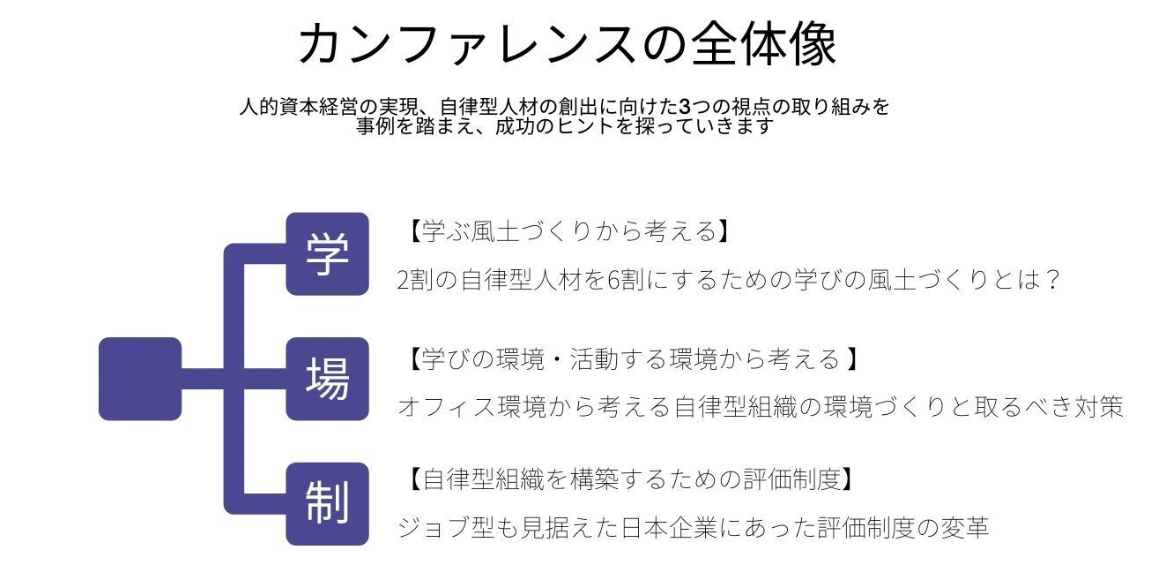 本カンファレンスは、経営者および人事担当者は成長し続ける組織作りのために、どのように考え、どういった組織作りをしたらよいのか、その中で人材育成の領域におけるとるべきアクションをともに考え、共に創りましょう。