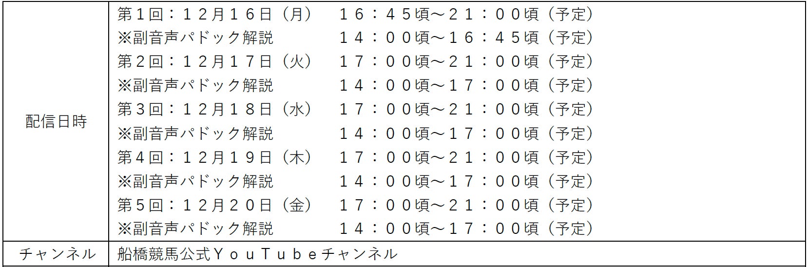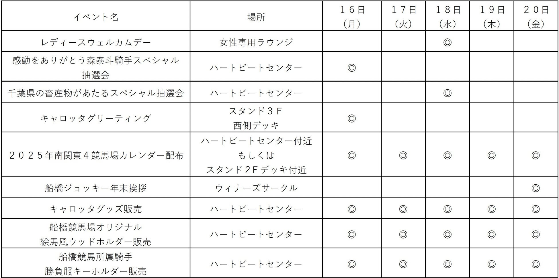 船橋ケイバ第10回開催〔12月16日(月)~12月20日(金)〕