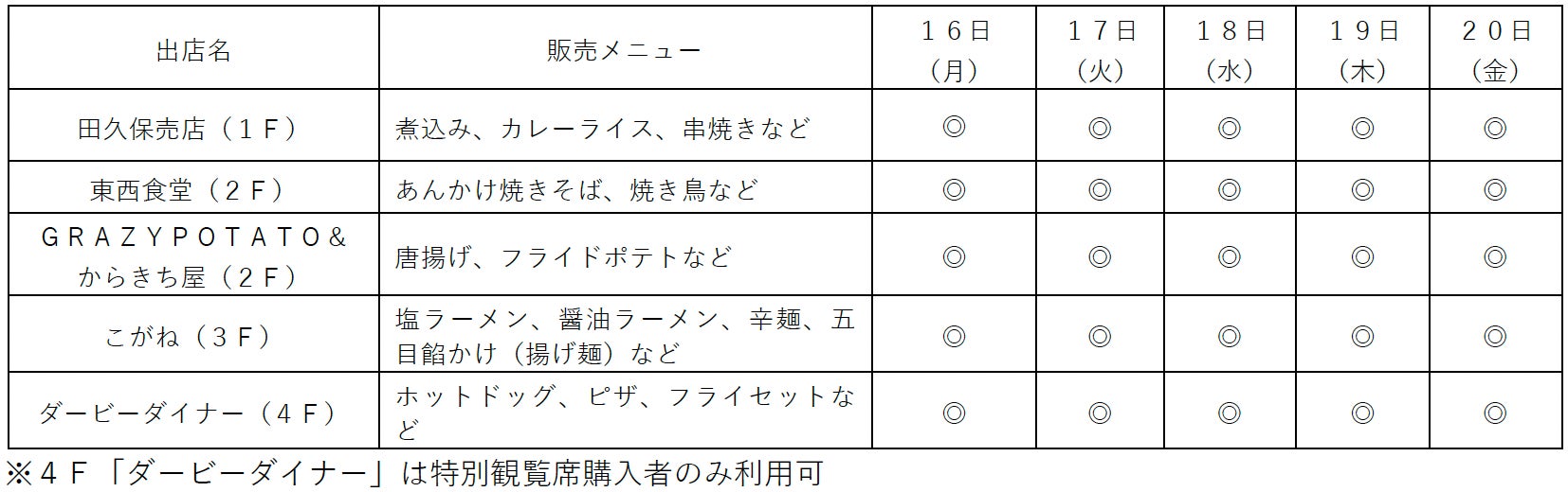 ※販売店:2Fマリリン売店、4Fダービーダイナー