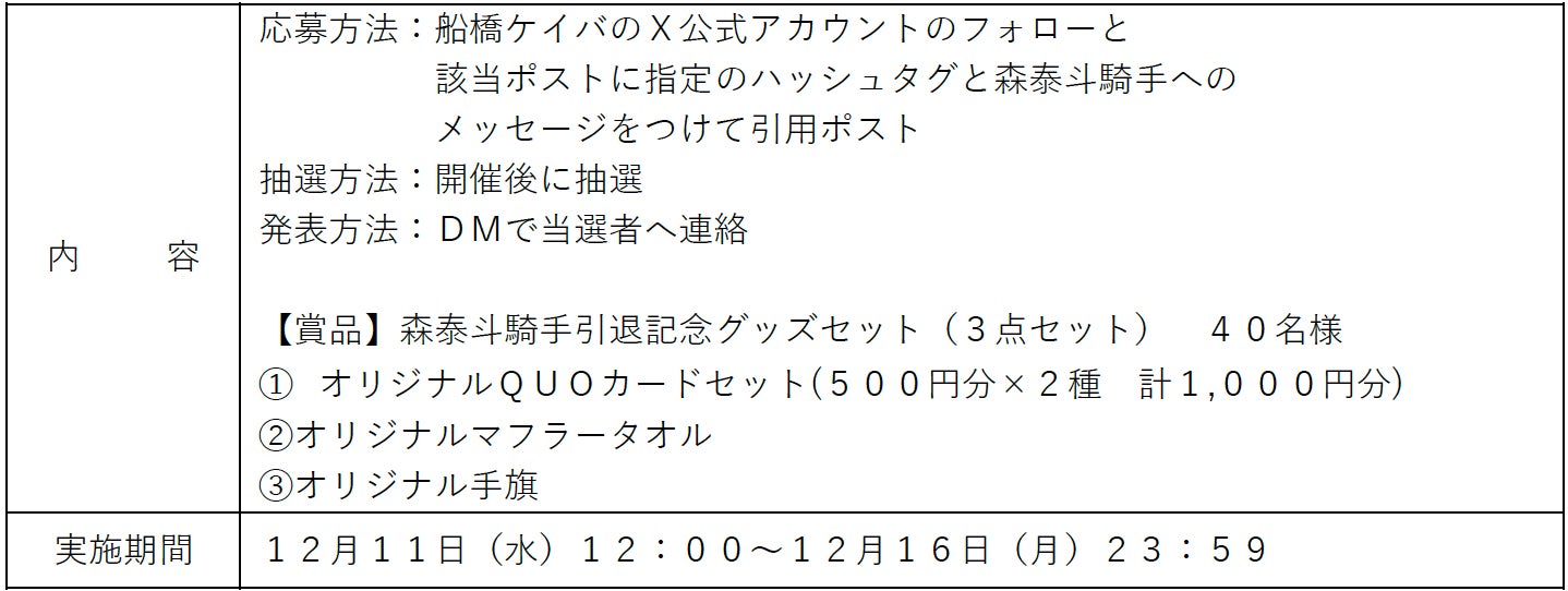 引退セレモニー当日の16日(月)に、森泰斗騎手引退記念グッズが当たる抽選会を実施します。