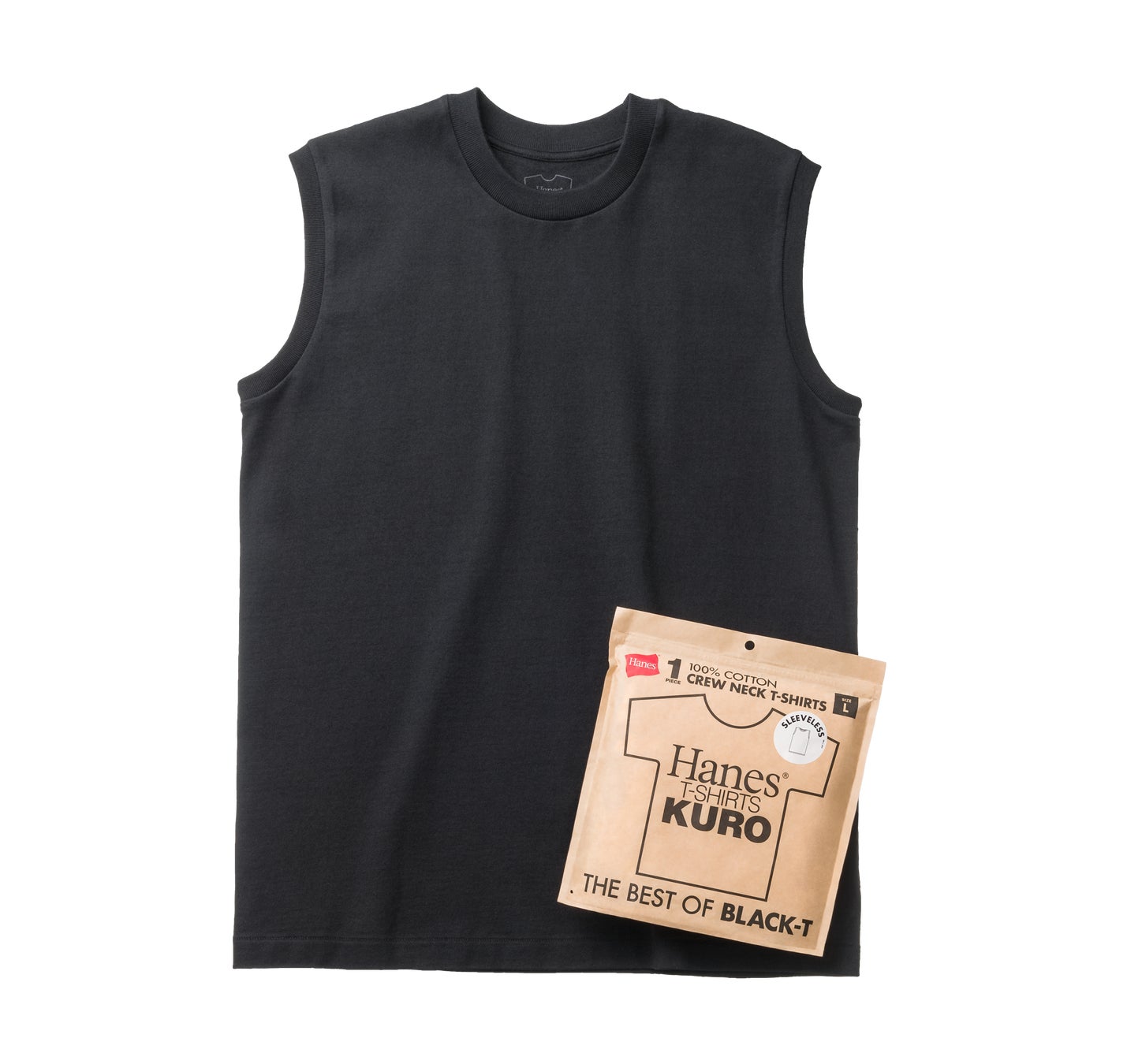 パックTシャツのパイオニア、ヘインズが新たに提案する「Hanes T-SHIRTS KURO」 のカラー展開は黒1色のみ。ラインナップにはショートスリーブタイプとスリーブレスタイプが揃います。