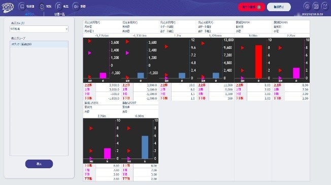 各施設の状態を系統表示する「監視図表示」、水位・流量・ポンプの運転状況などの過去比較を可能にする「トレンドグラフ表示」、水位・流量をメータ感覚で把握可能な「棒グラフ表示」、ポンプの運転状況や施設の異常状況を履歴表示する「イベント履歴表示」など、維持管理に必要不可欠な様々な表示画面を搭載しています。