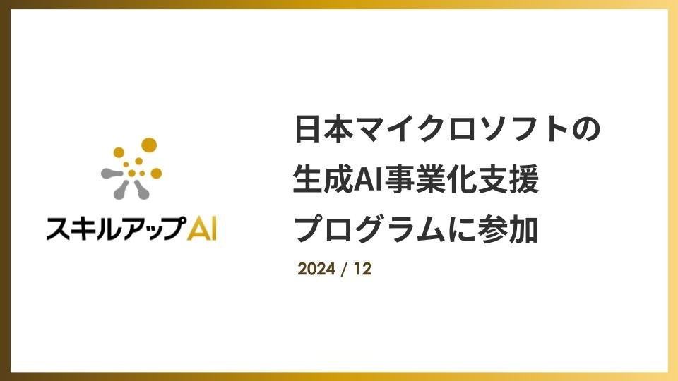 株式会社スキルアップNeXt(東京都千代田区、代表取締役 田原 眞一、以下「スキルアップNeXt」)は、日本マイクロソフト株式会社(本社:東京都港区、以下 「日本マイクロソフト」)の生成 AI 事業化支援プログラムに参加いたしました。