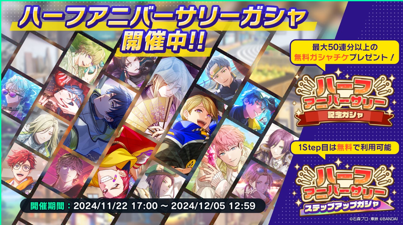 ▪最大50連以上無料!ハーフアニバーサリー記念ガシャが登場