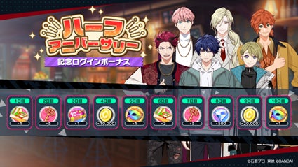 また、ハーフアニバーサリー当日の11月30日(土)には、ログインボーナスとして「ハーフアニバーサリー記念10連ガシャチケット」1枚と「虹色の仮面」3個をプレゼント!