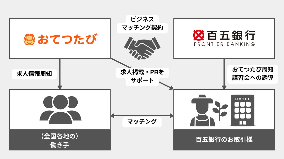 株式会社百五銀行(本店:三重県津市、頭取:杉浦 雅和)と顧客紹介業務に関する提携契約を地方銀行で初めて締結いたしました。この協業により、百五銀行の営業地域である三重県と愛知県の人手不足解消と関係人口創出に向けて共同で取り組んでまいります。