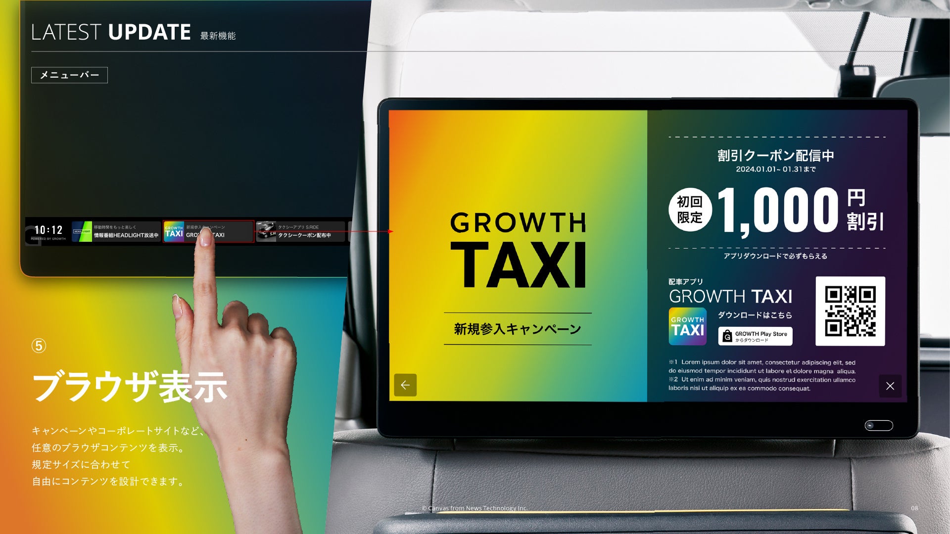 〜 Webブラウザ機能やリアウィンドウ広告が初登場。タクシーをまるごと活用しより深く伝わる乗車体験を提供 〜