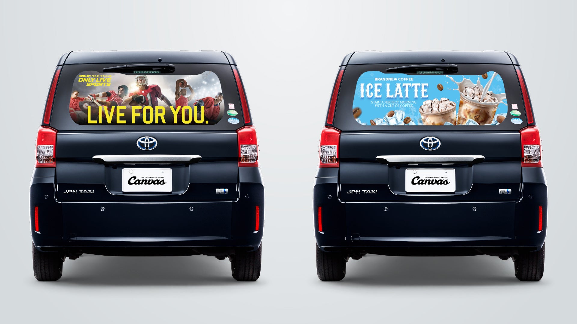 「Canvas」に加えて、車両後方のリアウィンドウラッピングメニューが登場。リアウィンドウも活用し特別車両として1ヶ月タクシーをジャックすることができます。まずはCanvas搭載車両50台(大和自動車交通のみ)を中心に販売を開始します。