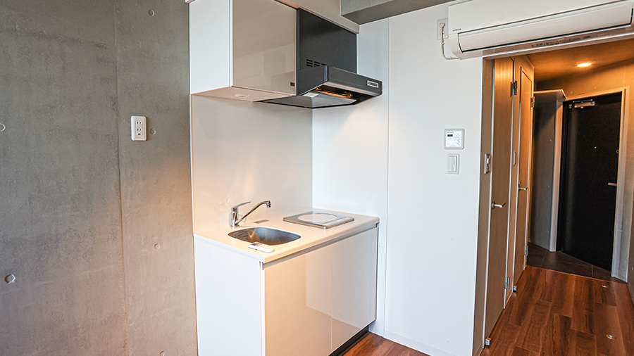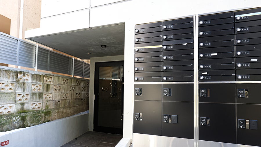 本物件は、約18平米とコンパクトなワンルームタイプ24戸で構成されている単身者向きの物件です。コンクリート打ち放しのスタイリッシュなデザインであり、エントランスオートロック、宅配ボックス、モニター付インターホン、温水洗浄便座、敷地内ごみ置場など、生活設備が充実している物件です。