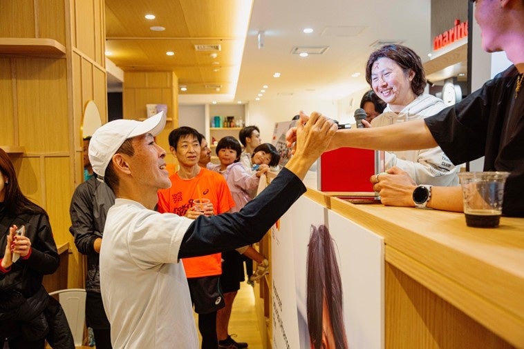 全員が完走した後は、乾杯セレモニーでナイスランを称え合い、続くトークショーではYOSHIKIさんがマラソンのルーティンや、東京マラソンに向けてのアドバイスなどを語りました。YOSHIKIさんのコミカルなキャラクターで観客からは共感の声や笑いが起こり、ランナー同士の絆が一層深まるひとときとなりました。