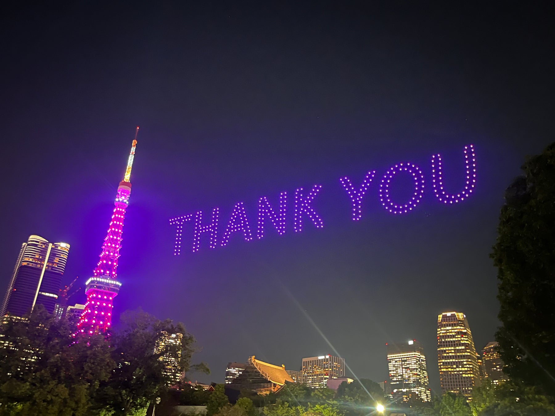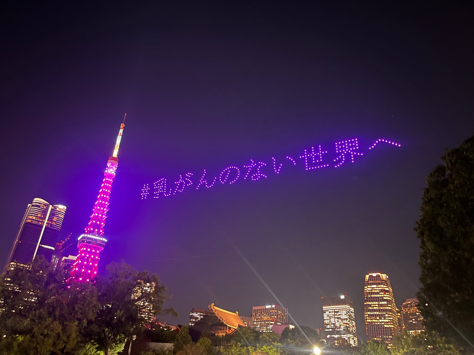 エスティ ローダー カンパニーズ社が毎年10月に行っている「乳がんキャンペーン」の特別協力の第一弾として、増上寺(東京都港区)境内から350機以上のドローンを打ち上げました。今年のテーマ「美しい絆で、乳がんのない世界へ」のメッセージのもと、ピンク色にライトアップされた東京タワーを背景として、本キャンペーンのシンボルであるピンクリボンを始めとして「#乳がんのない世界へ」「#Time To End Breast Cancer」などのメッセージを演出しました。