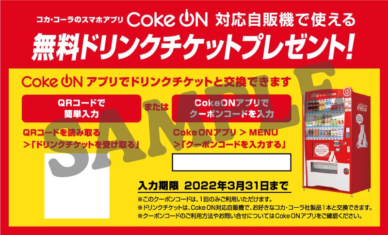 ※「Coke ON®ドリンクチケット」は、無くなり次第配布終了いたします。