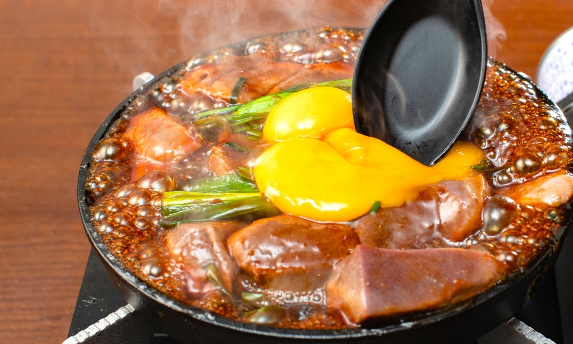 特製ダレに漬け込んだレバーを鉄板にのせ、その場で焼き上げます。鮮度抜群のぷりっとろ〜食感。臭みは一切なく、濃厚な旨味とほんのりとした甘味をご堪能ください!