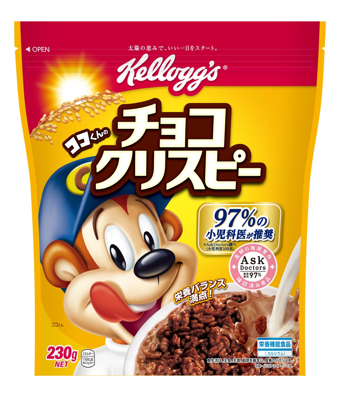 ケロッグでは、栄養満点でお子様にピッタリな子ども向けシリアル「コーンフロスティ」「ココくんのチョコワ」「ココくんのチョコクリスピー」を販売しています。2023年2月には、100名のうち97%の小児科医から推奨*され、AskDoctorsマークを取得しました。本結果を受け、成長期のお子様を持つ親御様に、より安心と信頼のもと、製品を手に取っていただけるよう、パッケージの前面に「97%の小児科医が推奨」という文言と、「AskDoctors」マークを分かりやすく記載しています。