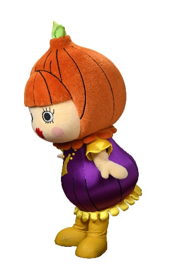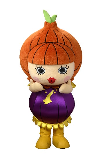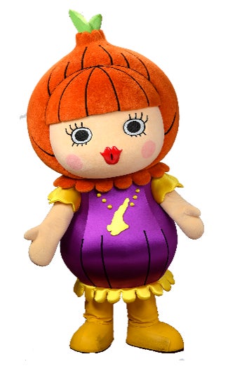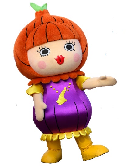 淡路たまねぎのタマ子さん。とても物知りでおしゃべり好きな年齢不詳の熟女。お風呂が大好きで、自慢のティーカップ型のお風呂に入ると、いいダシが出るらしい。淡路島の形のネックレスを愛用している。