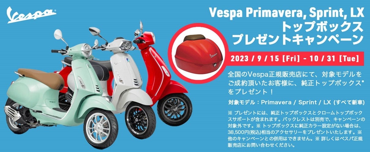 ベスパ | プリマベーラ / スプリント150 / LX 125純正トップボックス プレゼントキャンペーン実施のご案内