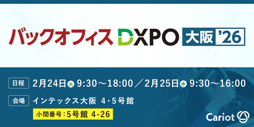 株式会社キャリオット(本社:東京都港区、代表取締役社長 齋藤 洋徳)は、2026年2月24日(火)・25日(水)、インテックス大阪で開催される「バックオフィスDXPO 大阪」に出展します。