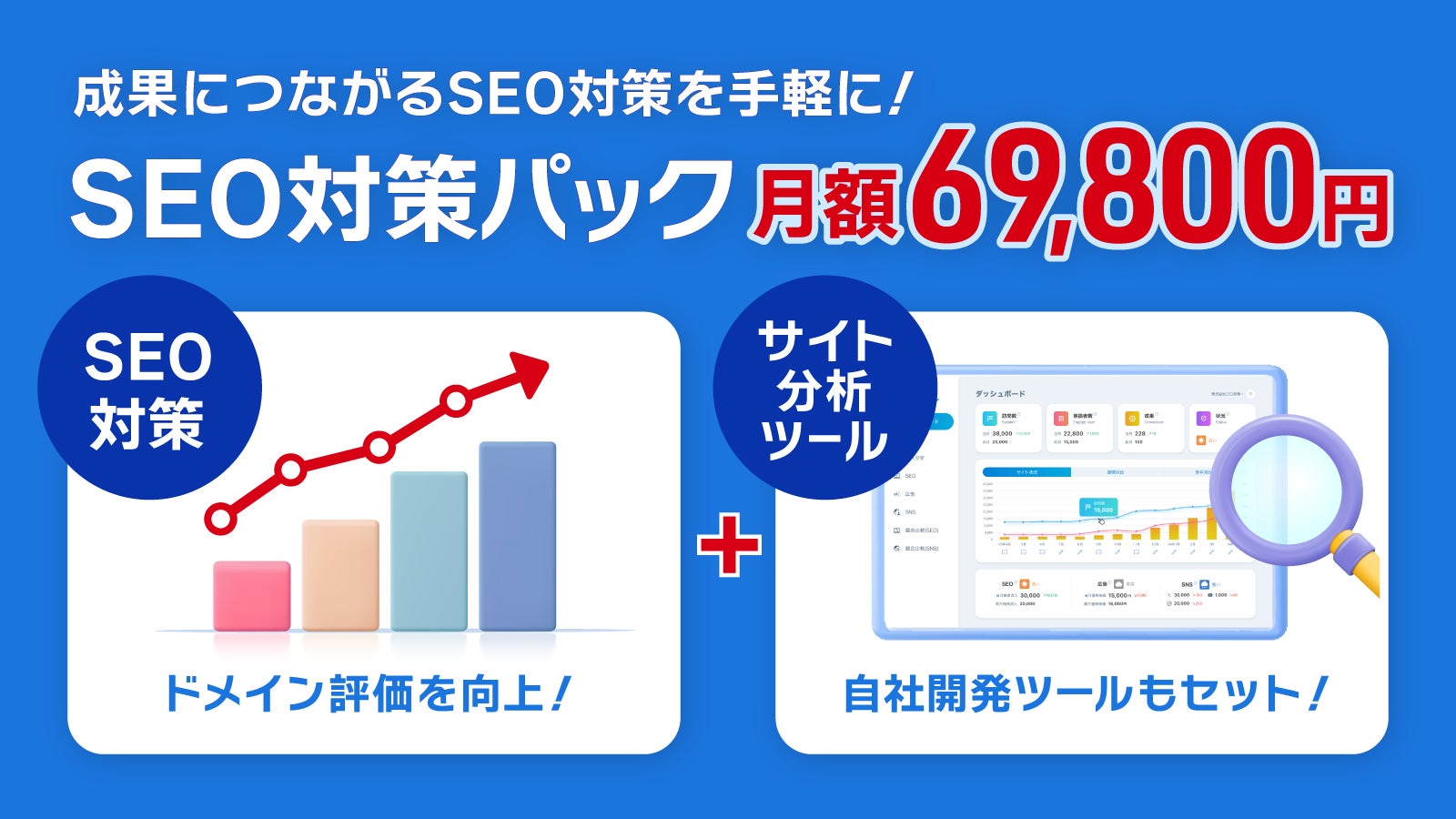 SEO対策と、マーケティングツール「コンパスくん」がセットになったマーケティング支援サービスです。手軽にSEO対策を始めてみたい企業様などにおすすめのサービスです。