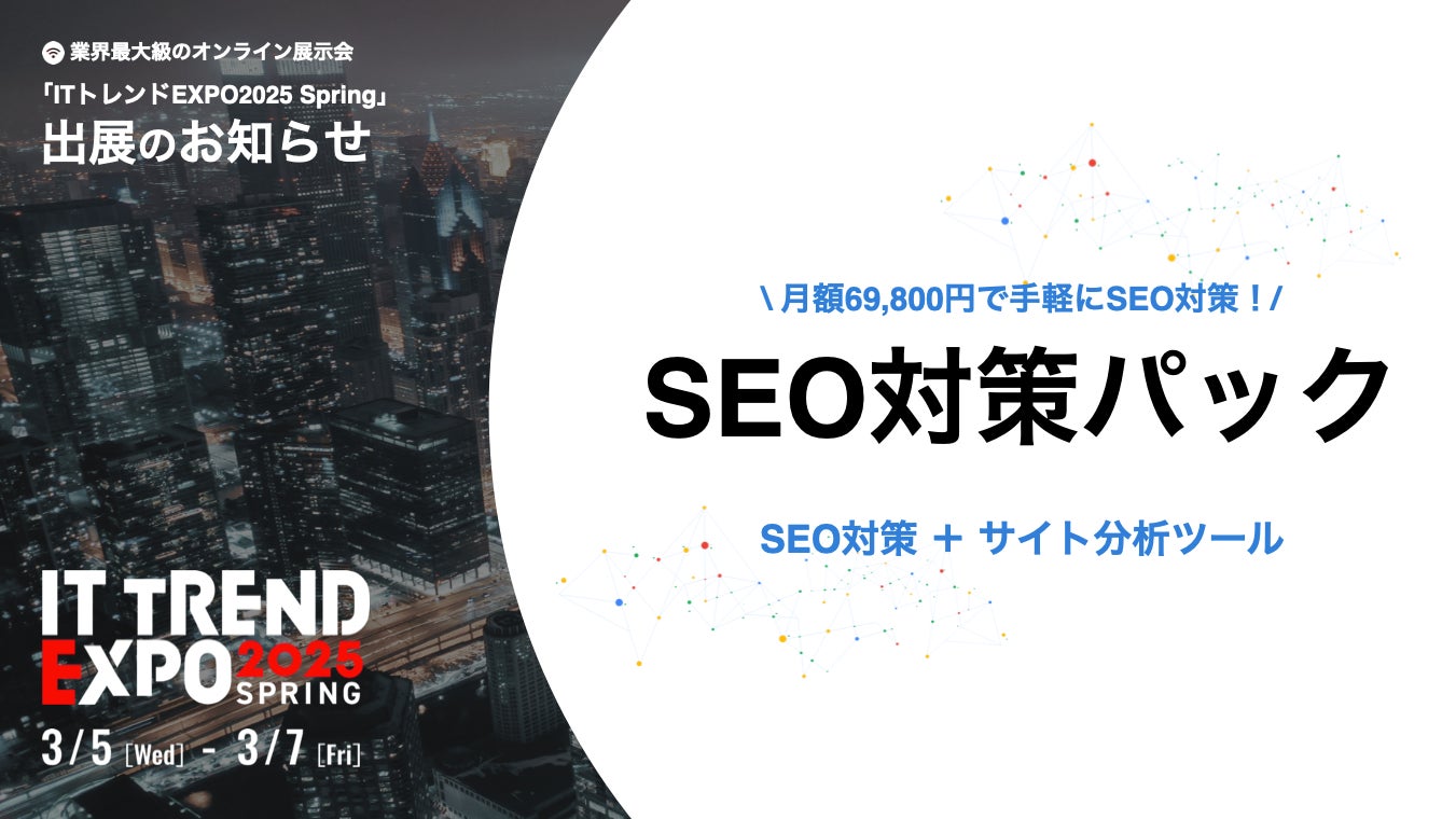 業界最大級のオンライン展示会「ITトレンドEXPO2025 Spring」に出展決定!月額69,800円ではじめられる【SEO対策パック】を展示