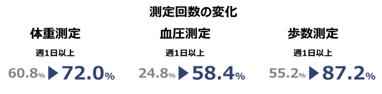 体重・血圧・歩数の測定習慣については、すべての項目において測定回数の増加が認められました。