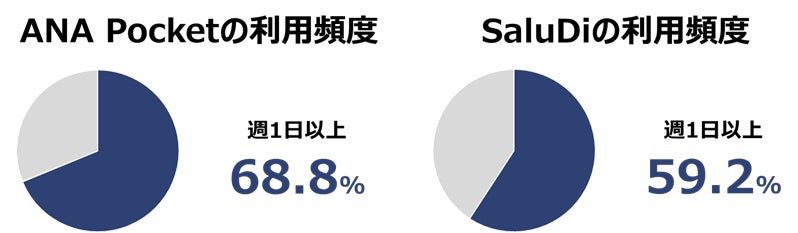 実証後アンケートより、ANA Pocketを週1回以上利用したと回答した参加者の割合は、約7割でした。SaluDiを週1回以上利用したと回答した参加者の割合は約6割でした。