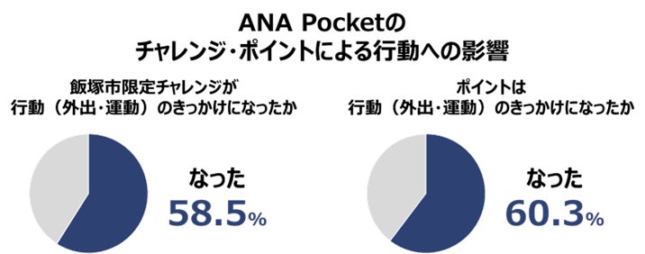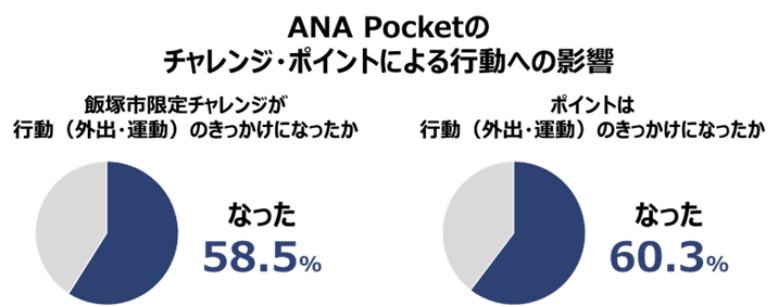 参加者の約6割がANA Pocketの飯塚市限定チャレンジおよびポイントが「行動(外出・運動)のきっかけになった」と回答しました。