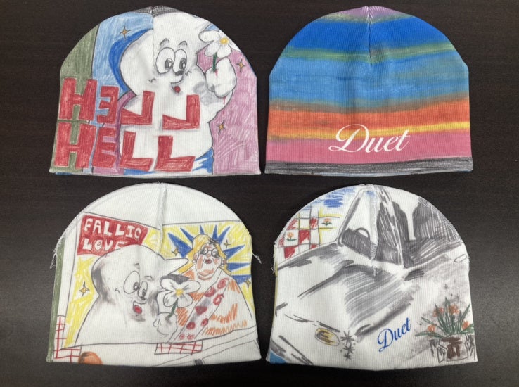 踊るような二面性を独自の手法で表現するブランド〈デュエット(Duet)〉からBOY氏のアート作品を落とし込んだリバーシブルビーニーを限定発売いたします。