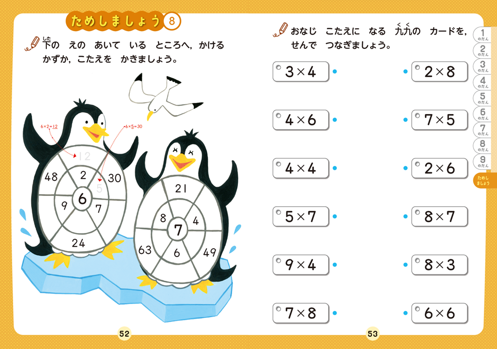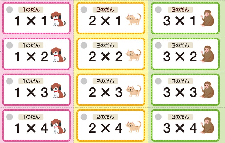 小学2年生で学習するかけ算の九九が、この1冊でマスターできます。