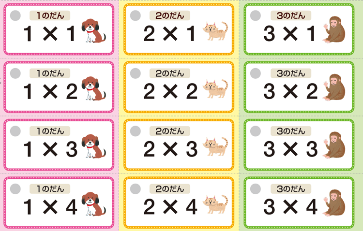 各段の九九の書き取りから81マス計算まで、基礎からステップを踏んで、九九をマスターします。