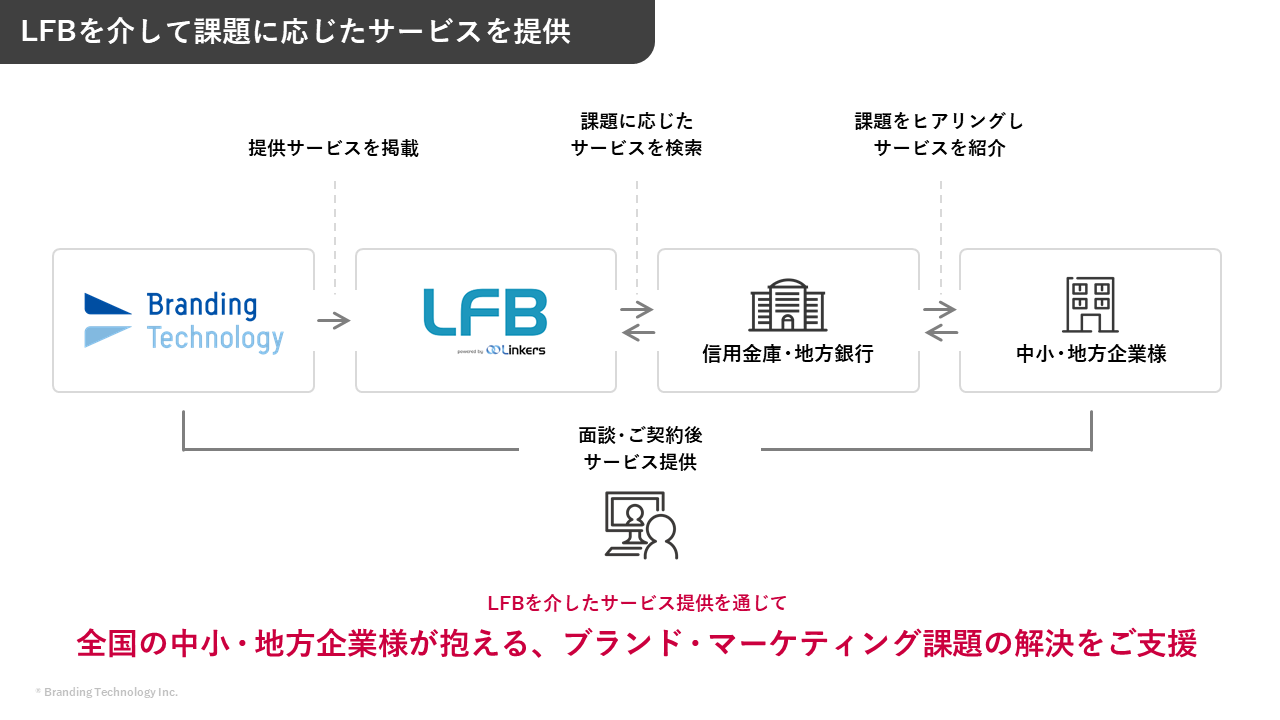ブランディングテクノロジー株式会社(代表取締役社長:木村 裕紀、本社:東京都渋谷区、以下当社)は、リンカーズ株式会社(代表取締役社長:前田佳宏、本社:東京都文京区)が運営するビジネスマッチングシステム「LFB*1」へサービス提供を開始します。