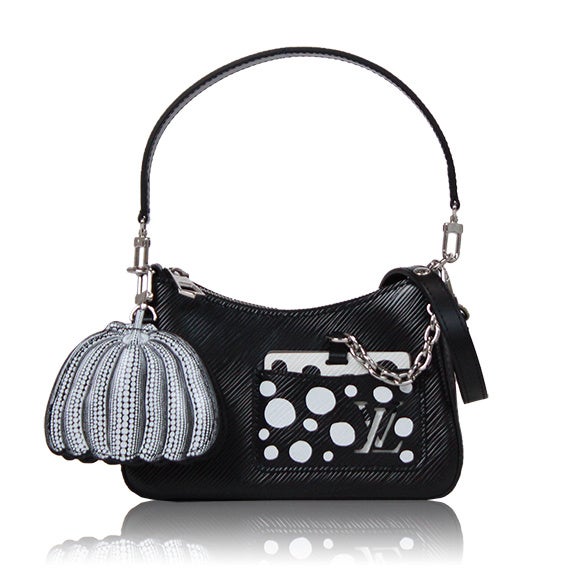 ルイ・ヴィトンの「マレリーニ」は、クラシックながらもモダンなデザインが魅力です。ブラックレザーにポップなドット柄とパンプキンモチーフのチャームがあしらわれており、遊び心と個性が際立ちます。美術館やギャラリー巡り、個性的なファッションが楽しめるカフェでの女子会、また、クリエイティブな仕事のカジュアルな打ち合わせなど、個性を表現したいシーンにぴったりです。