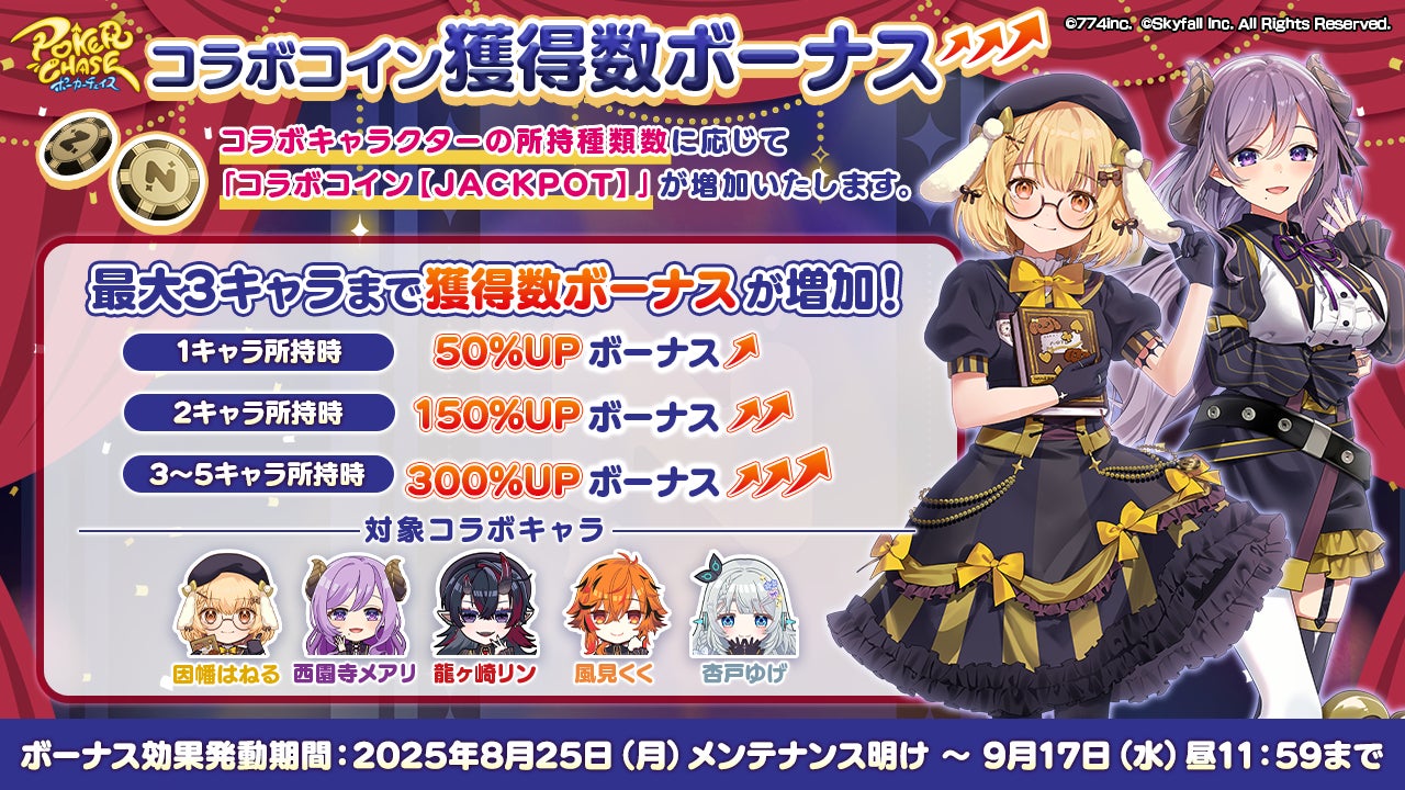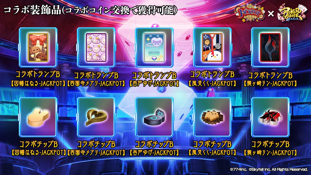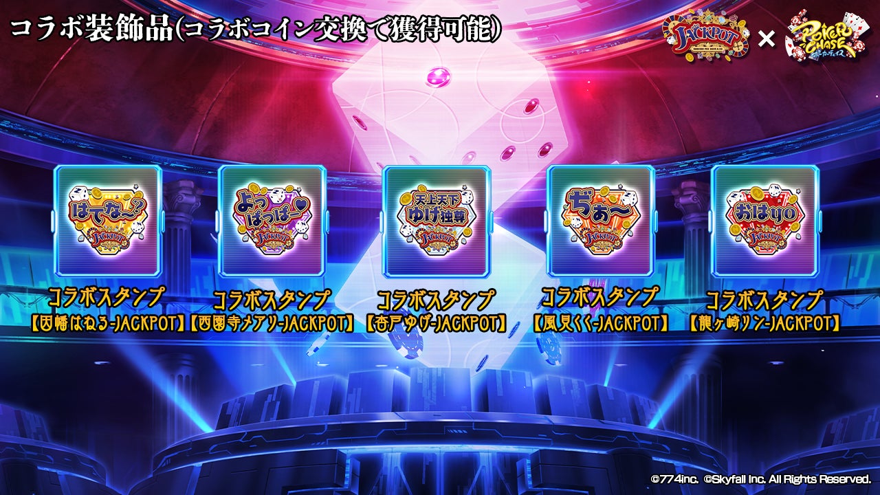 さらにコラボ開催を記念して、コラボキャラクターの所持種類数に応じて「コラボコイン【JACKPOT】」が増加します。