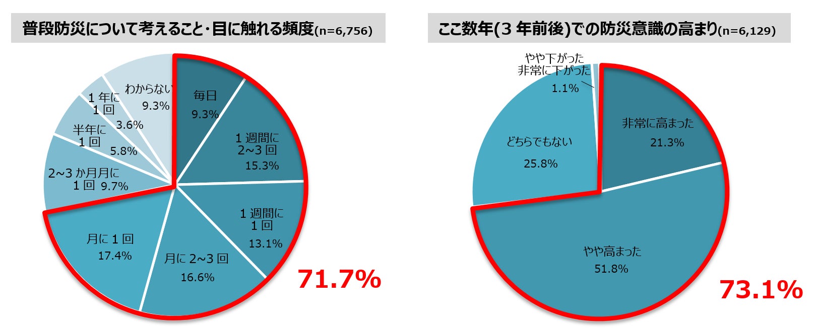 また、ここ数年(3年以内)で防災意識が高まった人の割合は73.1%も。