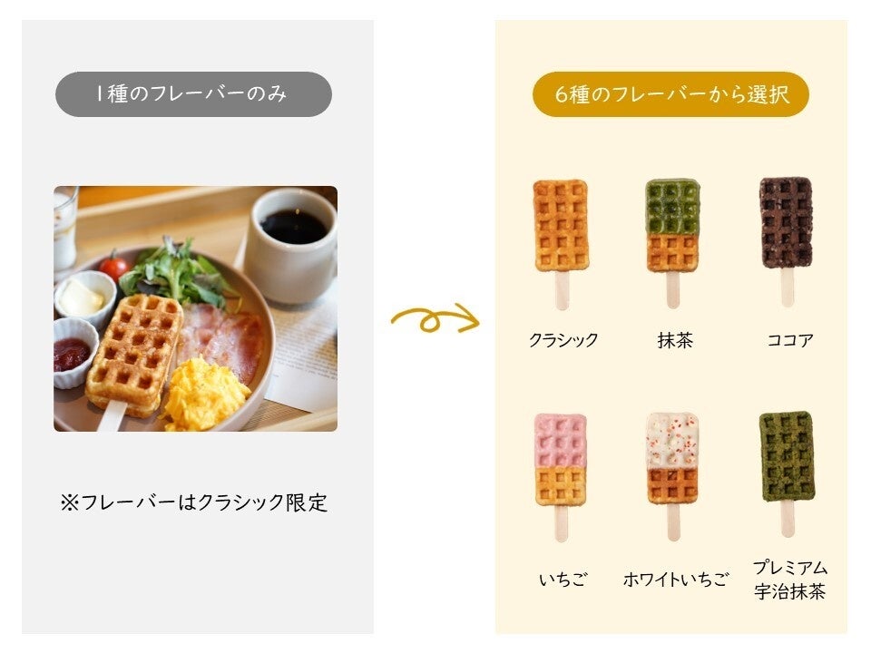 ⑤モーニングの京ワッフルを6種類のフレーバーから選べる(通常1種類)
