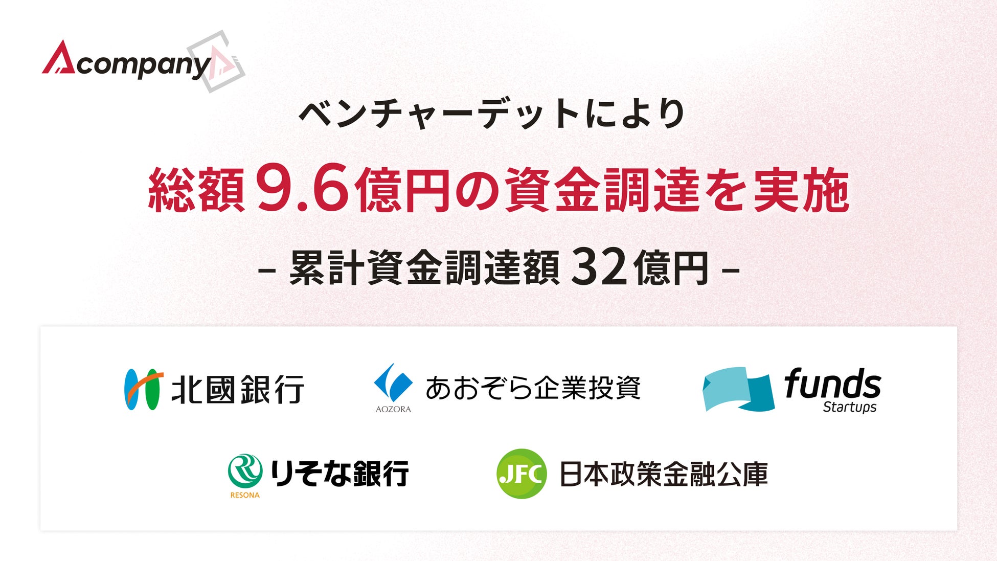 Acompany、ベンチャーデットにより総額9.6億円の資金調達を実施
