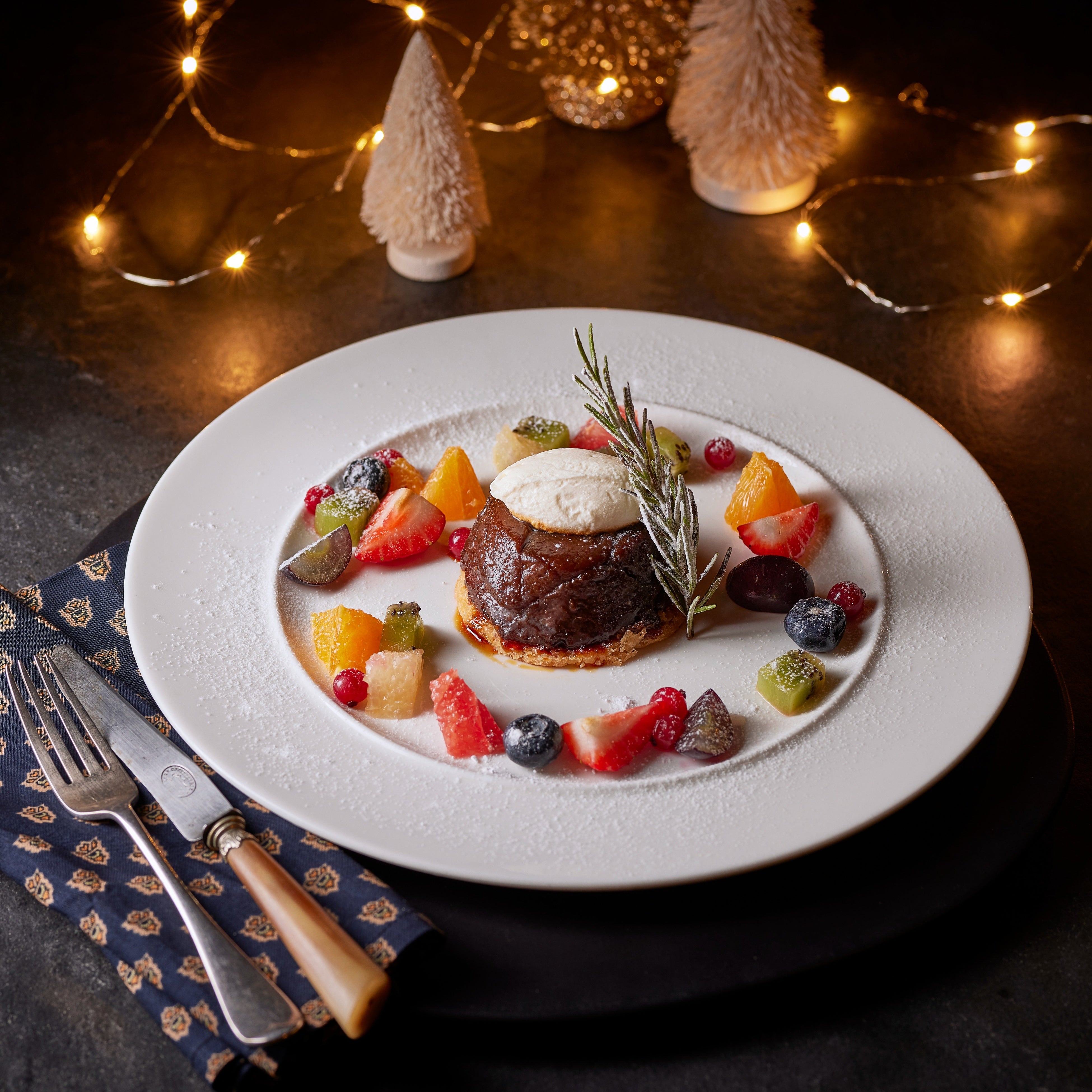キャラメリゼされたりんごのコクと香ばしさ、なめらかな口当たりを楽しめるタルト・タタン。シャンティクリームとりんごの相性も抜群です。周りに飾られたイチゴやブルーベリー、オレンジなどの果物が、ティータイムに華やかな彩りを添えます。販売期間 11月7日(火)~12月25日(月)