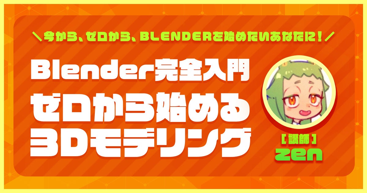 講師には、わかりやすいBlender講座動画で多くの方々から支持を集めるzen氏をお招きし、初心者でも安心して学べる実践的なカリキュラムを提供します。
