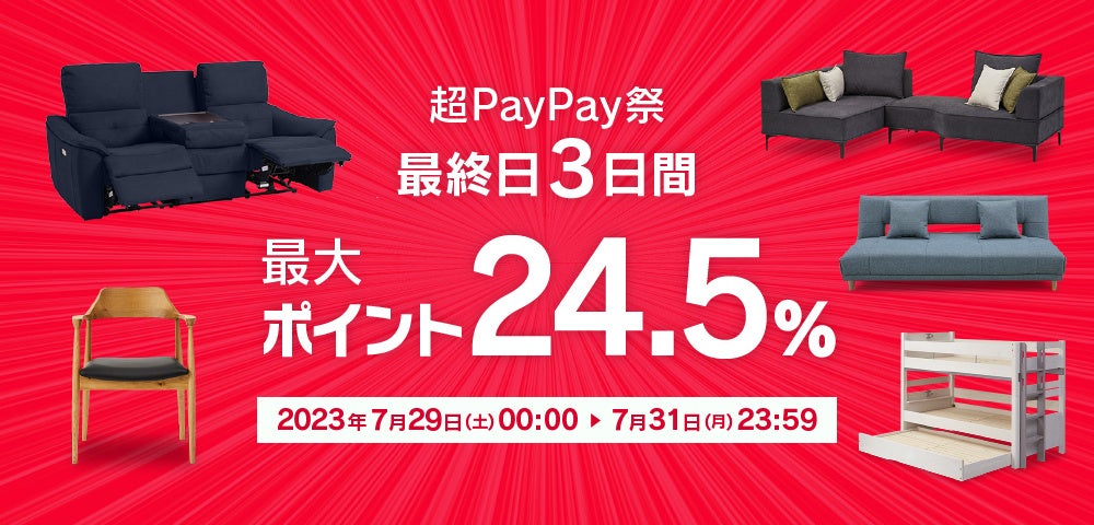 【関家具 Yahoo!店】超PayPay祭、最終日3日間はポイント最大24.5%!