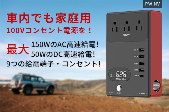 車でも最大150WのAC&50WのDC高速給電を!災害や停電の備えにも!カーインバーター「PWINV」