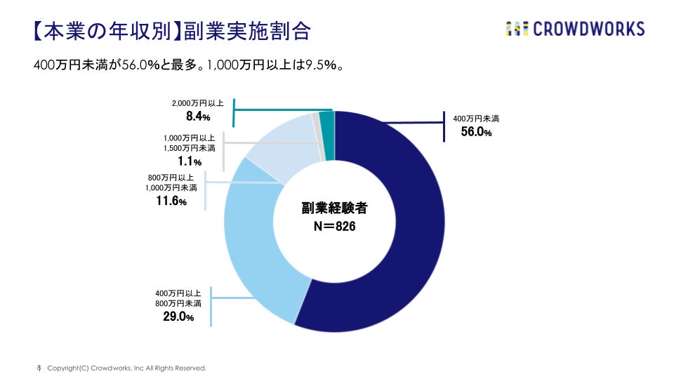 副業ワーカーは本業年収400万円未満が多く約6割、国内の潜在副業市場規模は推計27兆円