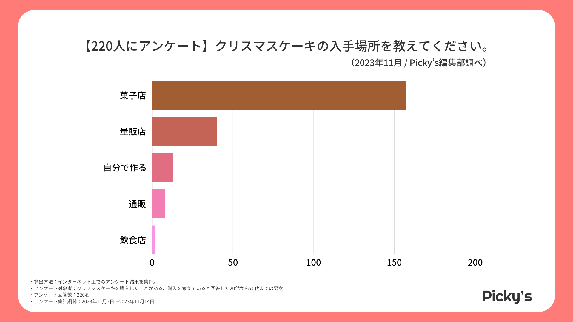 【220人にアンケート】購入したことがある・購入を考えているクリスマスケーキは?ケーキの種類や入手場所、価格を調査しました