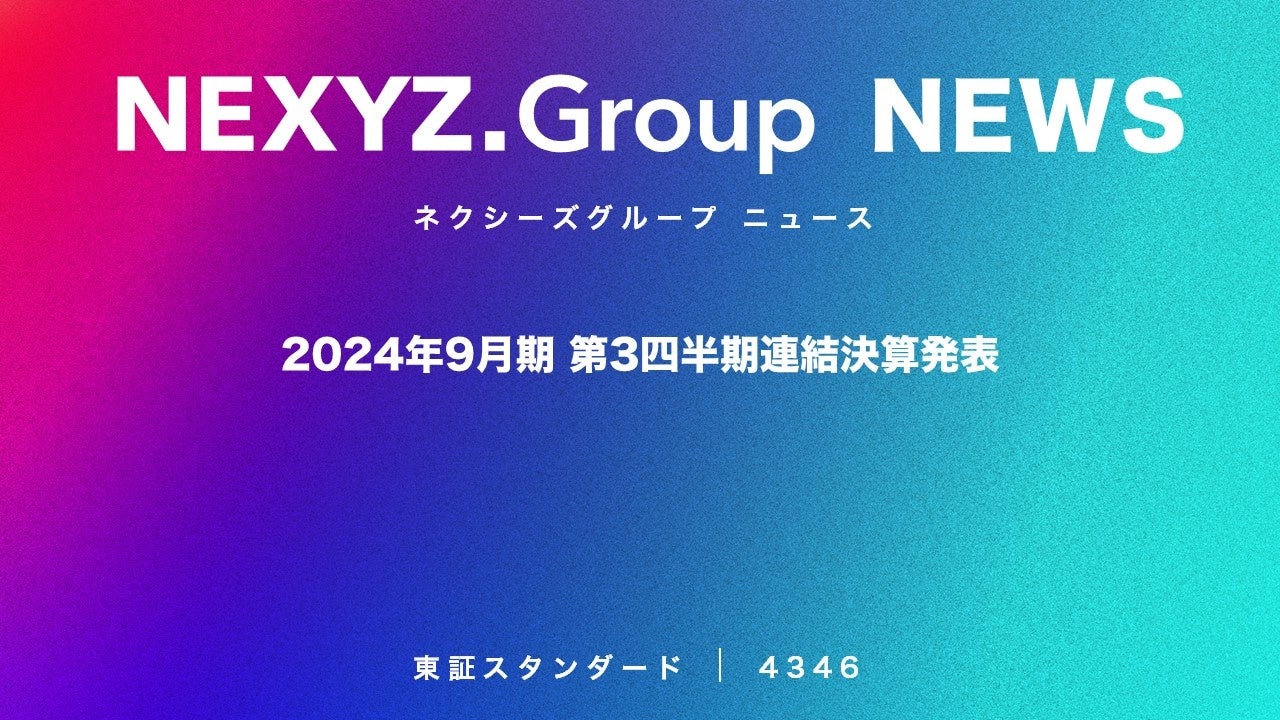株式会社NEXYZ.Group(東京都渋谷区 代表取締役社長 近藤太香巳 証券コード:4346 以下、当社)は、2024年9月期第3四半期連結決算を発表いたしました。合わせて決算説明資料を公開しております。