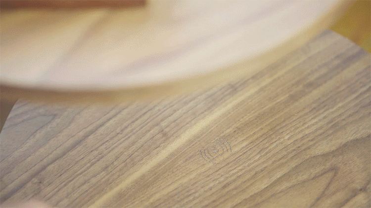テーブル中央部にワイヤレス充電対応スマホを載せるだけ。ケーブル接続の手間が省けてとってもスマート♪