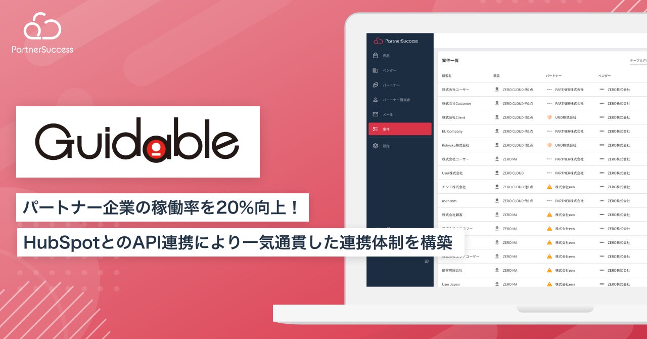 Guidable「PartnerSuccess PRM」導入により、パートナー企業の稼働率を20%向上 さらにHubSpotとのAPI連携により一気通貫した連携体制を構築