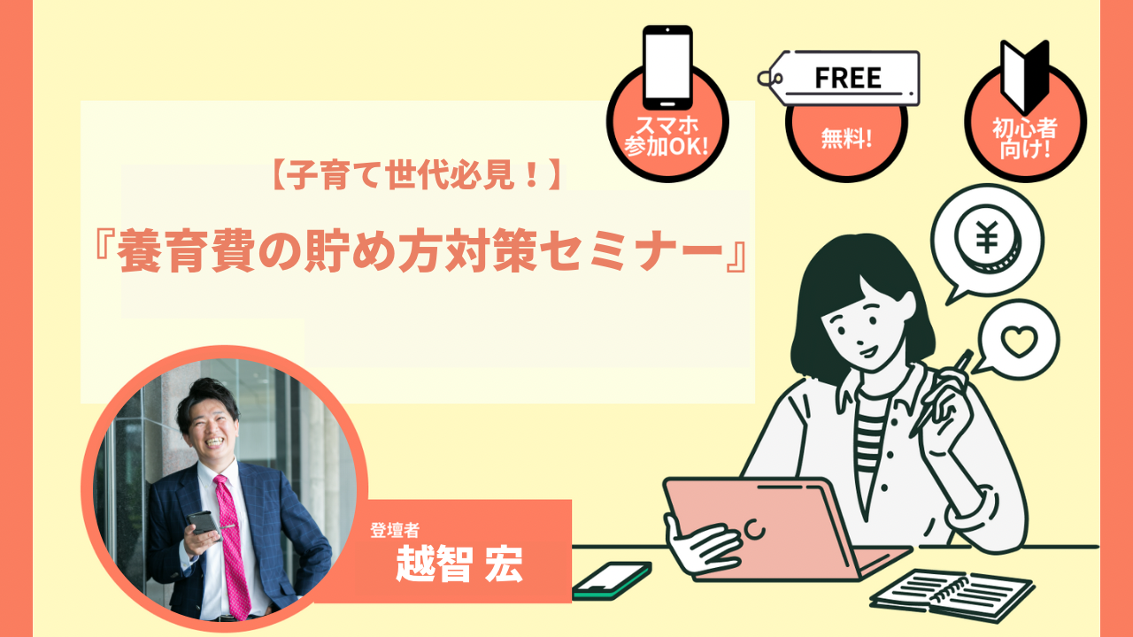 当日、社会保険・税金の効率化、家計・固定費の見直し、保険の新規加入・見直し、住宅購入・住宅ローン、など幅広くお金に関するセミナーをしている講師の越智 宏様を迎えて「”子育て世代必見!”養育費の貯め方セミナー」に関するオンラインセミナーを実施いたしました。