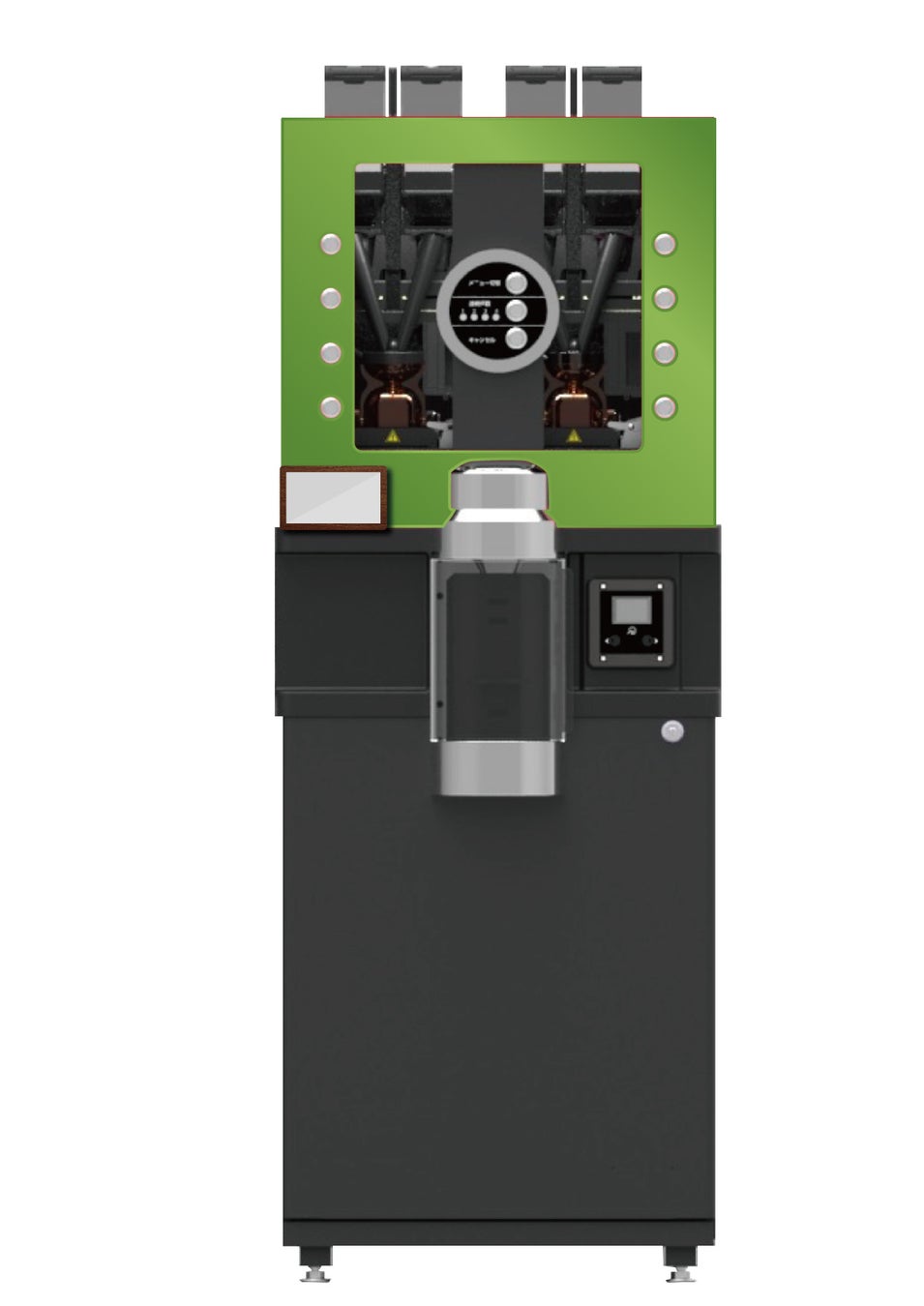 アペックスが開発したマイボトル対応型コーヒーマシンは、最大4種類のコーヒー豆やリーフティーなどを使用し、本格的な嗜好飲料を提供することが可能です。