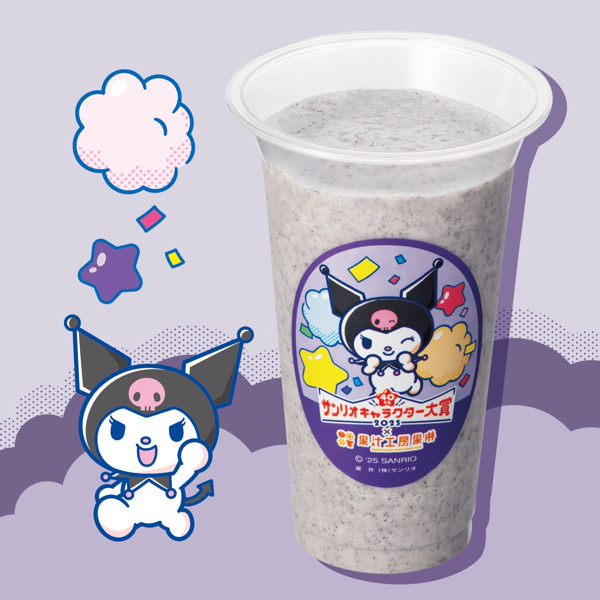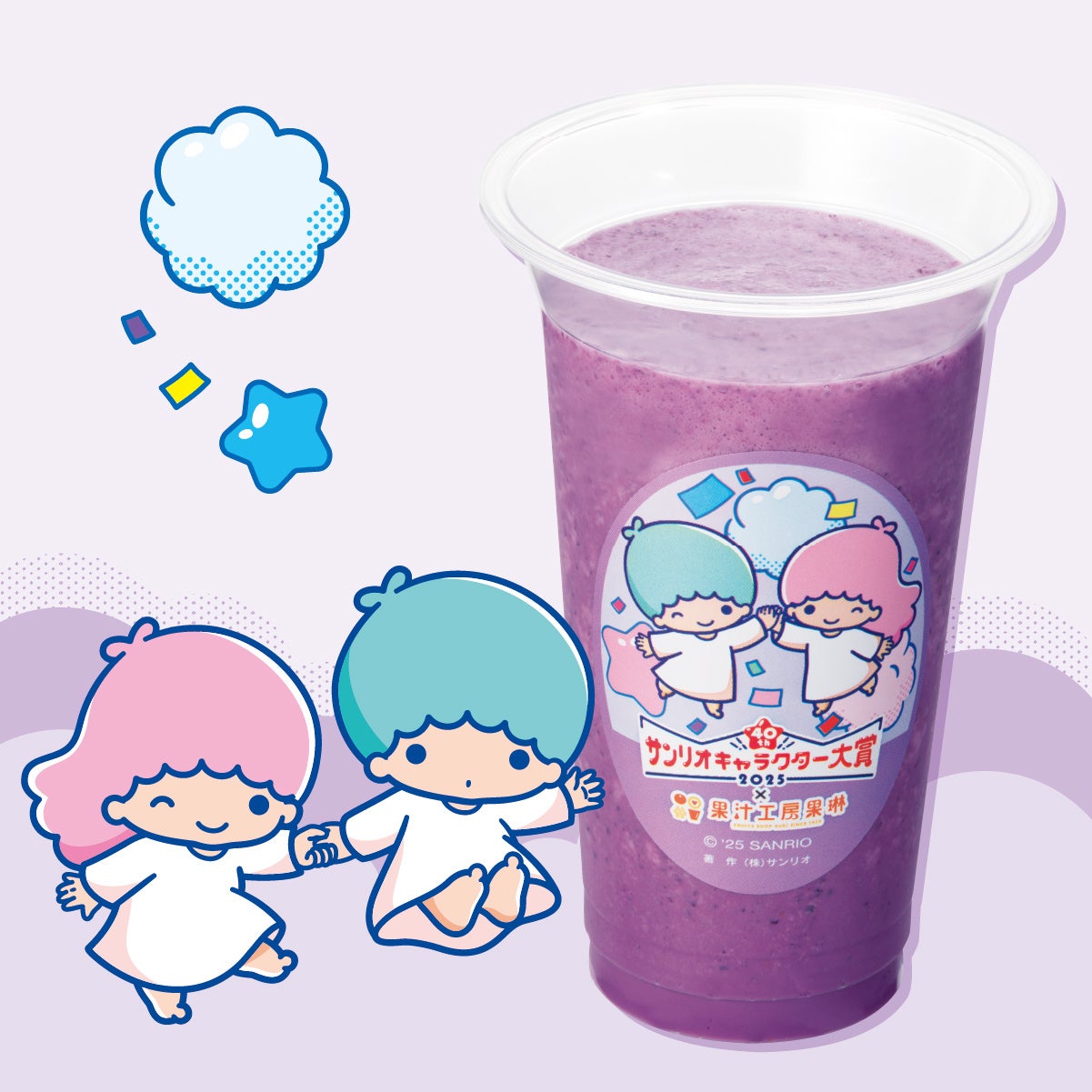 本企画は、株式会社サンリオ(本社:東京都品川区、以下サンリオ)が開催する人気投票イベント「2025年サンリオキャラクター大賞」とコラボして行われるものです。購入特典として、コラボジュース1杯購入ごとに特別デザインの限定コースター計10種の中からランダムで1枚プレゼントします。